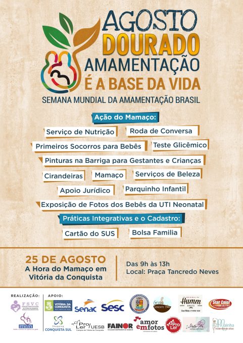 No próximo sábado (25), será realizada na Praça Tancredo Neves, centro de Vitória da Conquista, a “Hora do Mamaço”. A ação, que marca o encerramento da edição 2018 do Agosto Dourado na cidade, visa conscientizar a população e fortalecer as mães sobre o direito de amamentar em qualquer lugar.