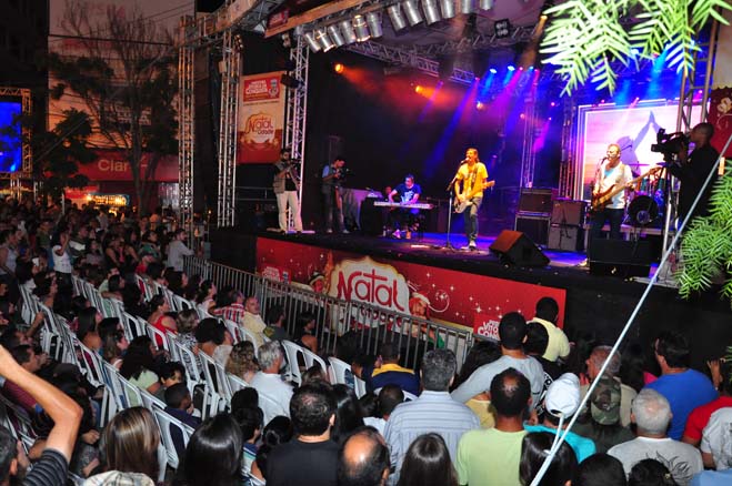 Uma dos mais originais conjuntos do rock nacional, a banda 14 Bis foi a grande atração da noite dessa quinta-feira, 20, na 16ª edição do Natal da Cidade. O vocalista do grupo, Cláudio Venturini, abriu o show com um dos maiores sucessos do grupo “Bola de Meia, Bola de Gude”, contagiando o público presente na Praça Barão do Rio Branco.
