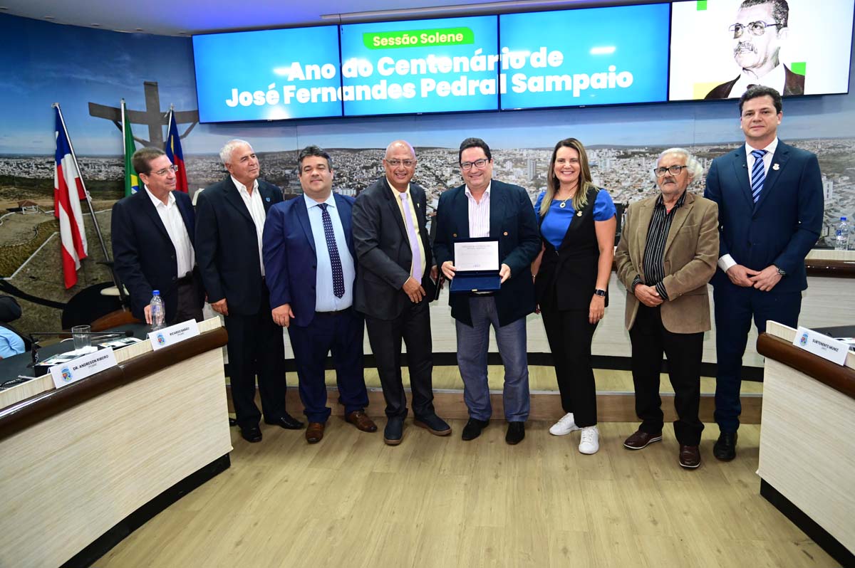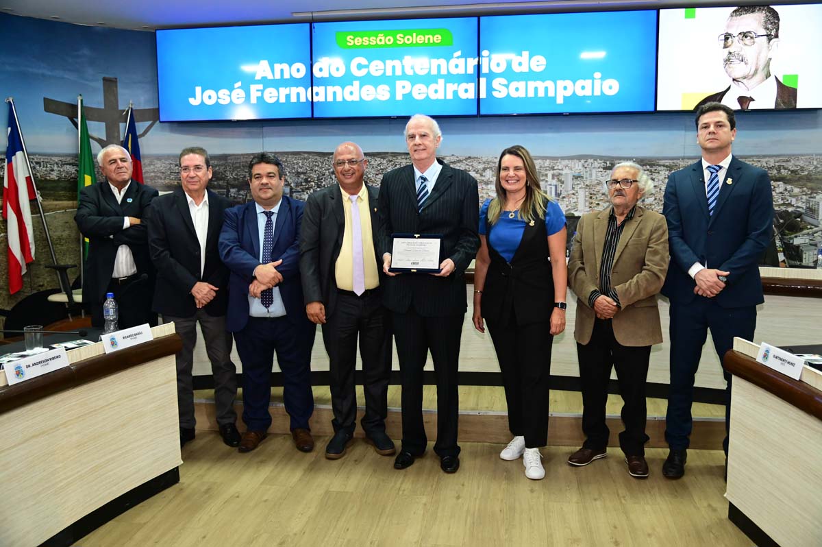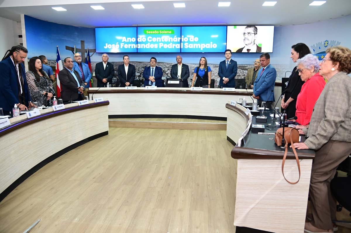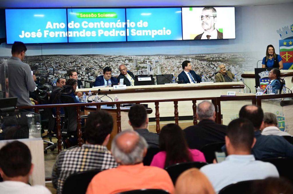 Depois de um dia de homenagens com a entronização do busto e da placa biográfica de Pedral na Avenida J. Pedral, além do lançamento do selo institucional, o centenário de nascimento do ex-prefeito José Pedral Sampaio foi celebrado mais uma vez com Sessão Solene na Câmara Municipal de Vitória da Conquista (CMVC). Carregada de emoção e profundo senso de responsabilidade histórica, a homenagem está inserida no aniversário de 185 anos da cidade – um reconhecimento ao homem que foi definido como o “arquiteto” do desenvolvimento e planejamento de longo prazo do município.