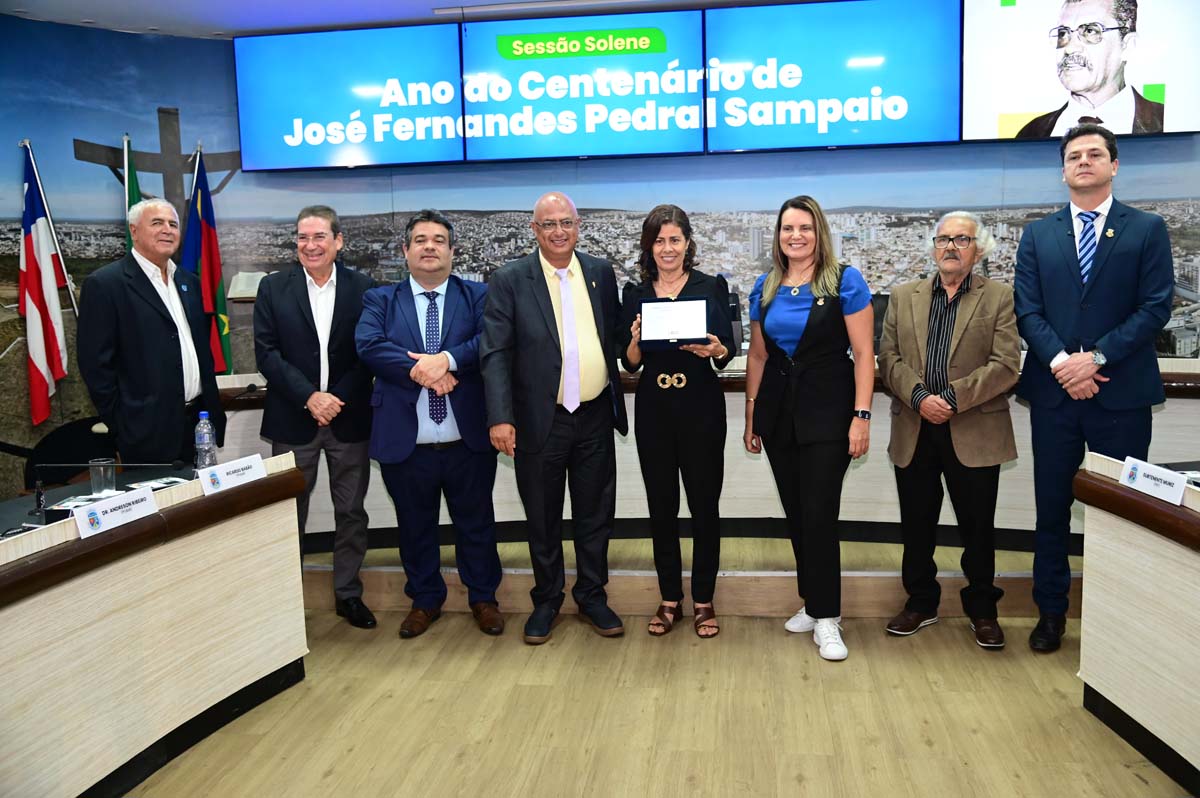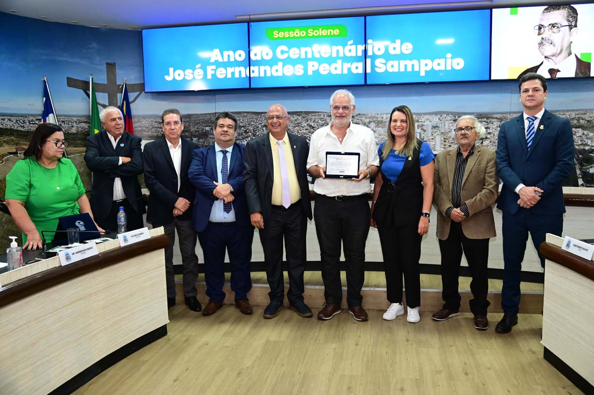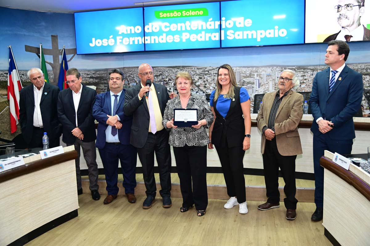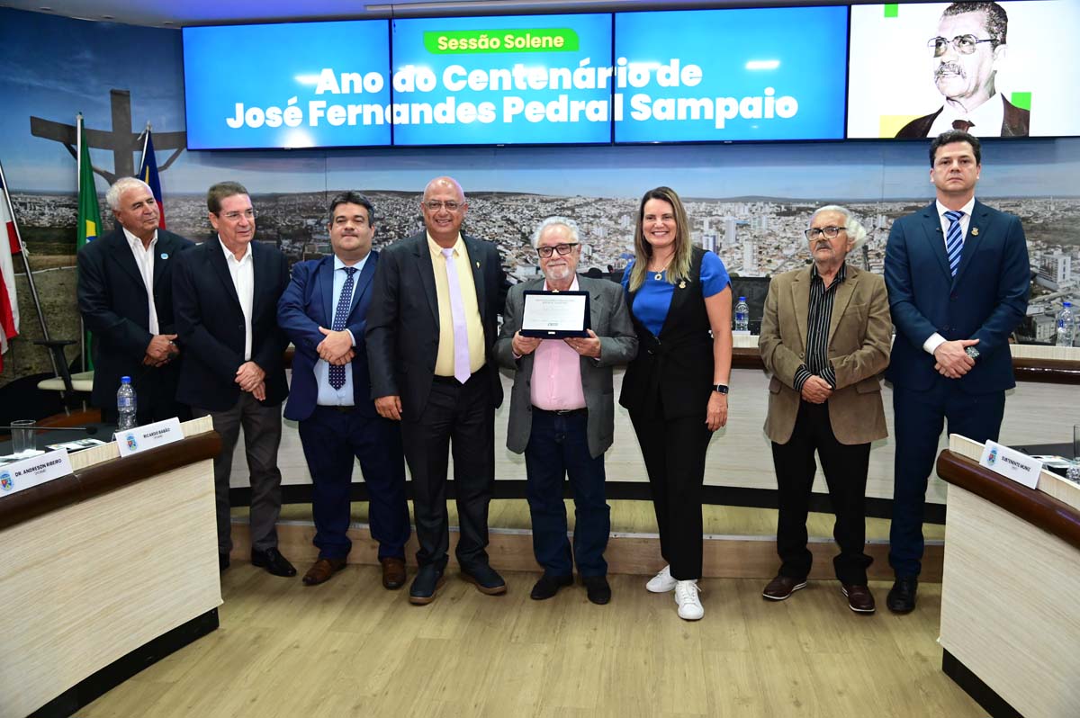 Depois de um dia de homenagens com a entronização do busto e da placa biográfica de Pedral na Avenida J. Pedral, além do lançamento do selo institucional, o centenário de nascimento do ex-prefeito José Pedral Sampaio foi celebrado mais uma vez com Sessão Solene na Câmara Municipal de Vitória da Conquista (CMVC). Carregada de emoção e profundo senso de responsabilidade histórica, a homenagem está inserida no aniversário de 185 anos da cidade – um reconhecimento ao homem que foi definido como o “arquiteto” do desenvolvimento e planejamento de longo prazo do município.