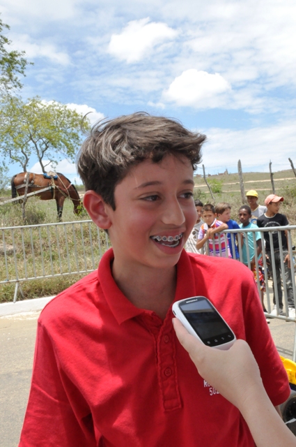 Carlos Eduardo, 12, ficou impressionado com a sensação de pilotar um kart pela primeira vez. “É bom demais. Não tem como explicar como é bom. É a primeira vez que eu brinco. Eu já tinha vontade de participar, então meu tio, que é meu padrinho, me trouxe e eu gostei muito”, contou.