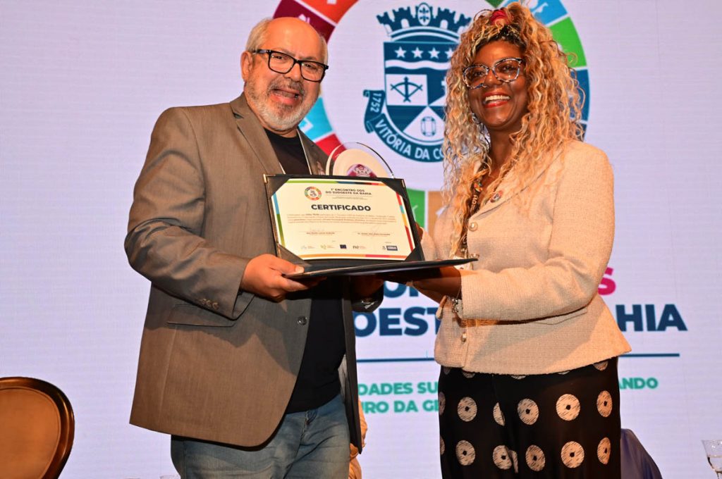 Ao final, todos os palestrantes receberam uma placa e um certificado de participação do 1º Encontro dos Objetivos de Desenvolvimento Sustentável do Sudoeste da Bahia entregue por secretários municipais.