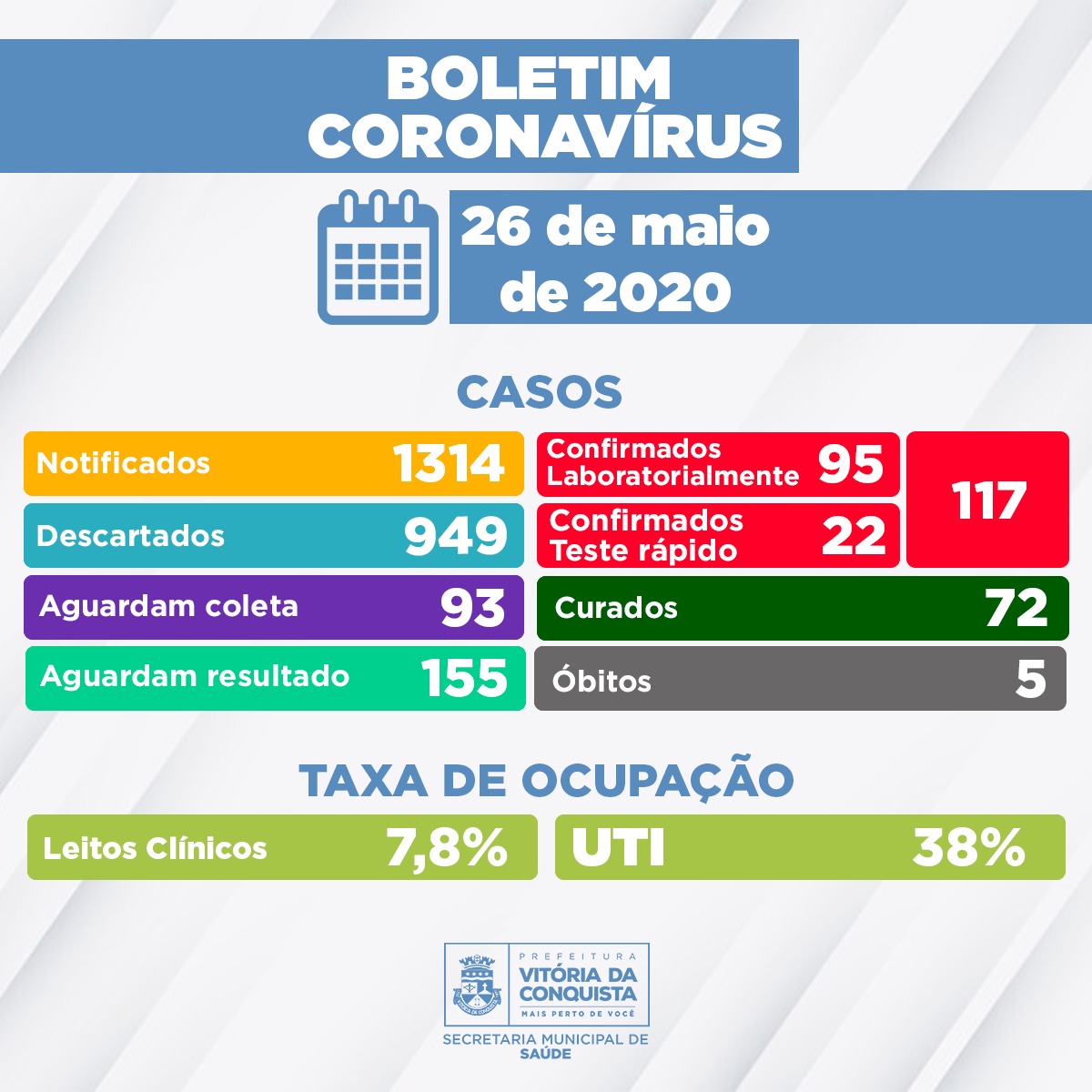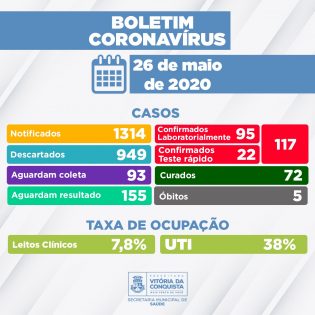Conteúdo de Prefeitura Municipal de Vitória da Conquista – PMVC disponível em /26-05-boletim-epidemiologico-117-pessoas-infectadas-pela-covid-19-72-curados-40-em-recuperacao-e-5-obitos/whatsapp-image-2020-05-26-at-19-00-26/ acessado em 17/04/2026 00:43:25