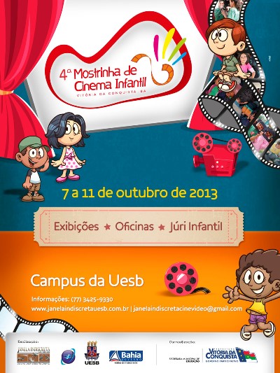 Realização – A Mostrinha de Cinema Infantil de Vitória da Conquista acontece desde outubro de 2010. O evento é realizado pela Universidade Estadual do Sudoeste da Bahia, por meio da Pró-Reitoria de Extensão e do Programa Janela Indiscreta Cine-Vídeo Uesb, com a correalização da Prefeitura de Vitória da Conquista, por meio da Secretaria Municipal de Educação.