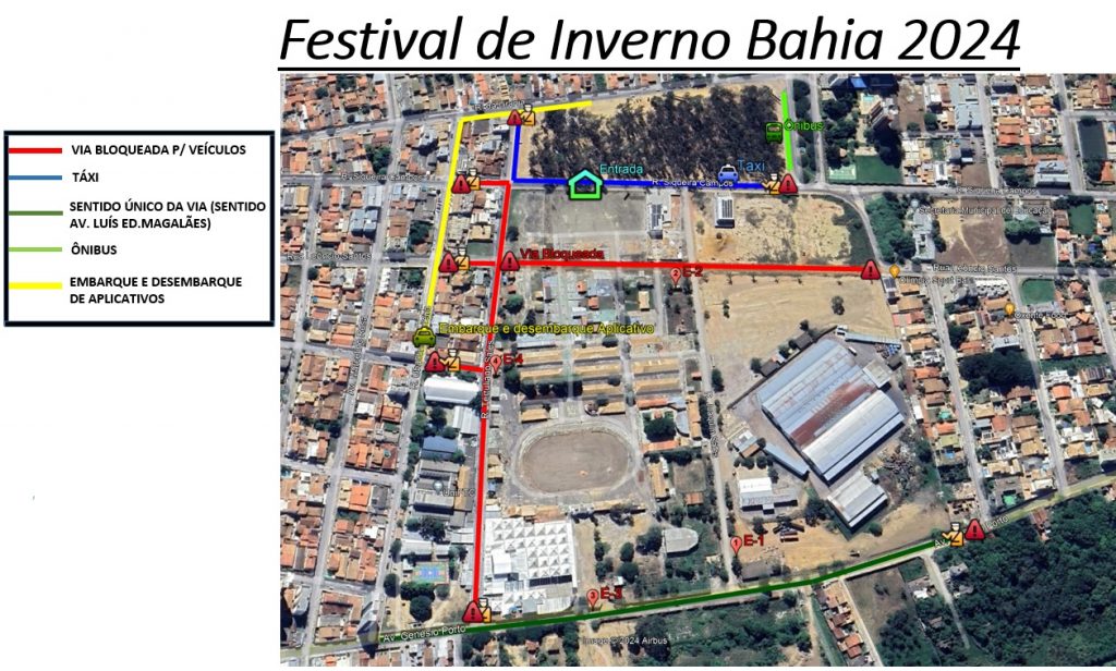 A Prefeitura Municipal, por meio da Secretaria de Mobilidade Urbana (Semob), informa que nos dias 23, 24 e 25 de agosto, o trânsito das imediações do Parque de Exposições Teopompo de Almeida será alterado. A medida acontece por conta da realização do Festival de Inverno Bahia (FIB).