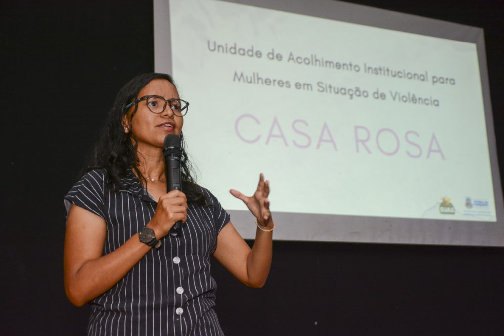 A primeira palestra foi proferida por Irlane Gomes de Carvalho, diretora de Assistência Social da Secretaria Municipal de Desenvolvimento Social. Ela falou sobre a importância da Casa Rosa e dos serviços que a unidade vai realizar, a exemplo de atendimento qualificado, acompanhar e abrigar mulheres em situação de violência doméstica, ameaçadas ou com risco iminente de morte, e, caso necessário, também, acolher os dependentes menores de 18 anos de idade. Também destacou o esforço do Governo Municipal para que a Casa Rosa se tornasse realidade.