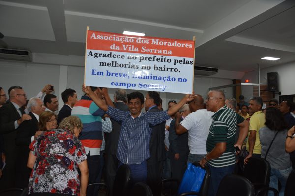 No auditório, muitos aplaudiram o discurso do prefeito e trouxeram manifestações de apoio. O Presidente da Associação de Moradores da Vila Serrana, por exemplo, desenrolou uma faixa em que se lia agradecimentos à Prefeitura pelos trabalhos prestados no bairro.