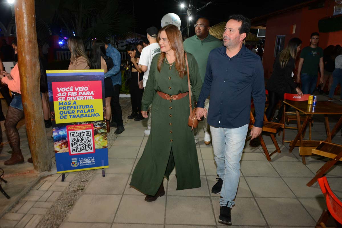 A prefeita Sheila Lemos esteve no espaço. Assim como os visitantes, ela recebeu um copo personalizado com o seu nome, desenhado por artistas locais, tirou fotos em frente ao letreiro indicando “Eu amo Conquista” e conversou com os cidadãos. Ela falou sobre a alegria em mais uma vez realizar a parceria com o FIB, considerado um dos maiores festivais de música do Norte e Nordeste, que impulsiona a cultura, turismo e economia de Vitória da Conquista.
