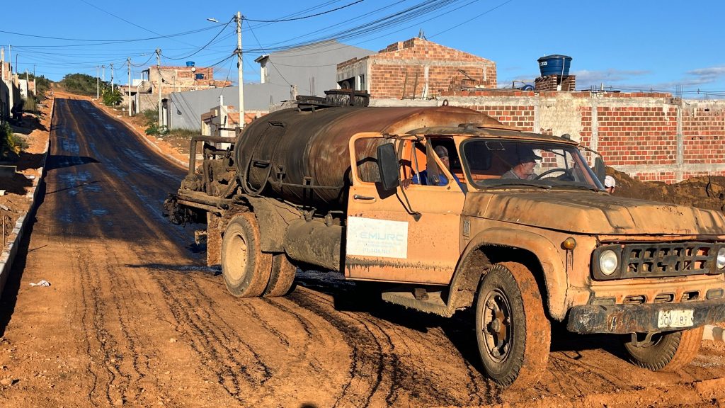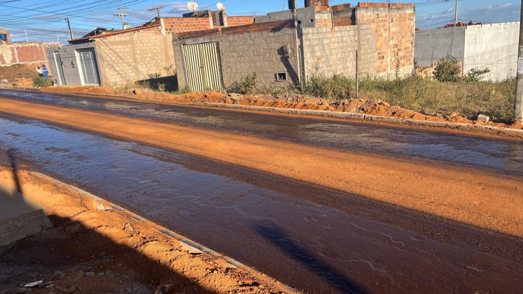 A lama e a poeira estão com os dias contados no loteamento Bateias 2, bairro Zabelê. Nessa quinta-feira (16), a Prefeitura de Vitória da Conquista começou a fazer a imprimação das ruas, camada que antecede o asfalto.