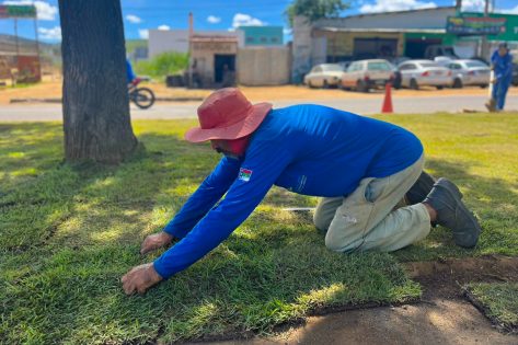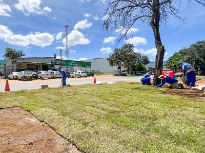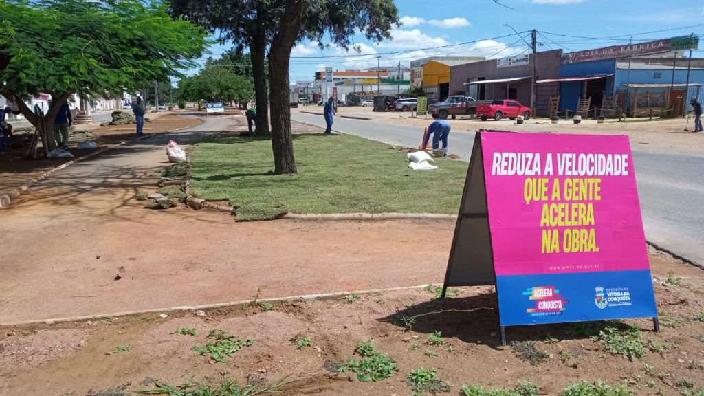 A obra de revitalização da Avenida Brumado começou a ganhar um toque especial, nesta quinta-feira (18). A Prefeitura iniciou o plantio da grama no canteiro da via e a paisagem na avenida já começou a se transformar.