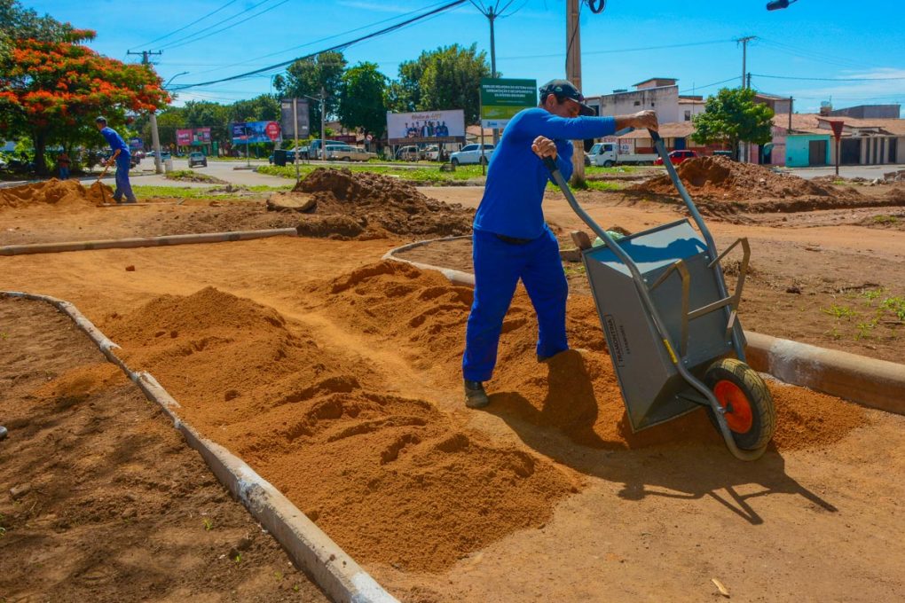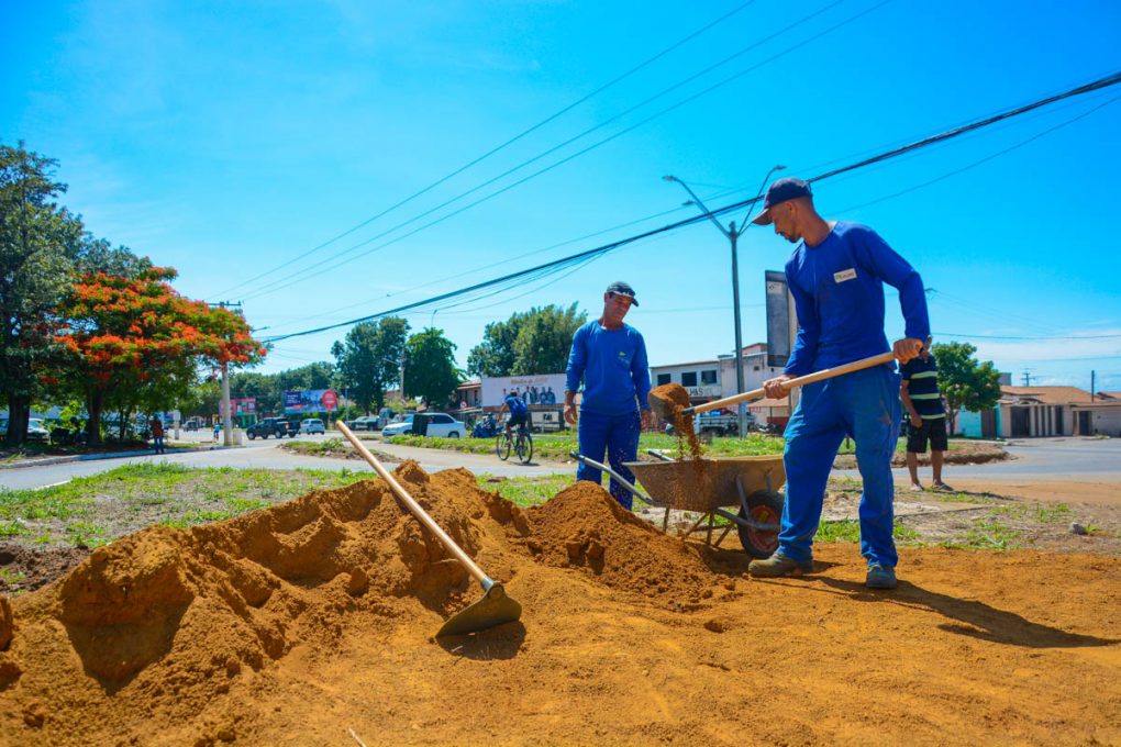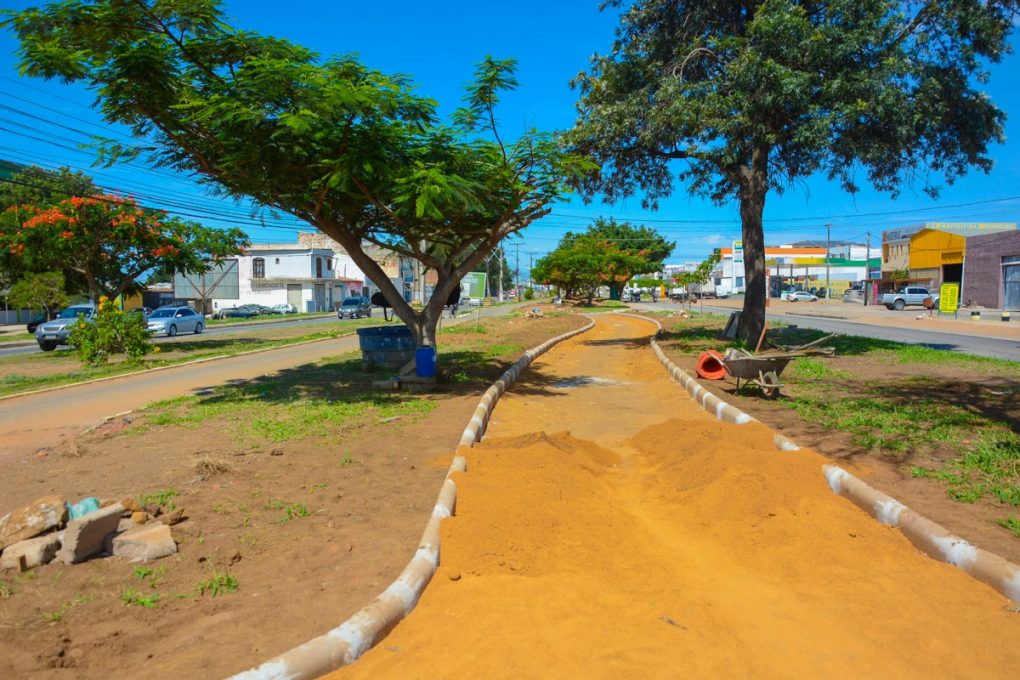 Menos de um mês após a assinatura da Ordem de Serviço, a obra de reurbanização da Avenida Brumado continua avançando. Nesse momento, a equipe da Empresa Municipal de Urbanização (Emurc), responsável pela execução do projeto, está realizando a regularização da área onde será implantada a pista do cooper.