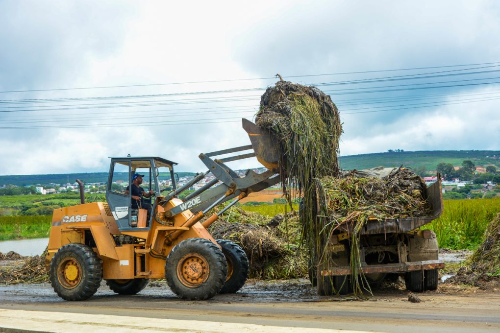 A via está sendo utilizada para receber o material, que de lá segue em caçambas para a área de descarte. O Simtrans está no local para orientar os motoristas.