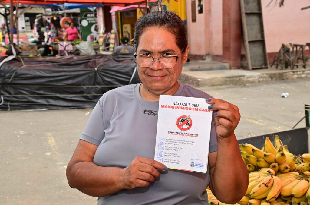 Durante a toda manhã, as equipe abordaram a população nos pontos da ação. Na Feira do Brasil, a conversa com os feirantes e a entrega de panfleto com orientação ajudaram a tirar dúvidas de Marinalva Viana, moradora do Campinhos, sobre as formas de se proteger contra o mosquito. “Eu acho muito importante, né? Esse mosquito é perigoso. Minha irmã pegou dengue e ficou muito mal mesmo, muita dor no corpo. Mas graças a Deus que agora ela está bem. Então, tem que prestar muita atenção no nosso quintal, no quintal do vizinho e no terreno baldio, porque às vezes as pessoas também jogam lixo que pode acumular água. É muito perigoso”.