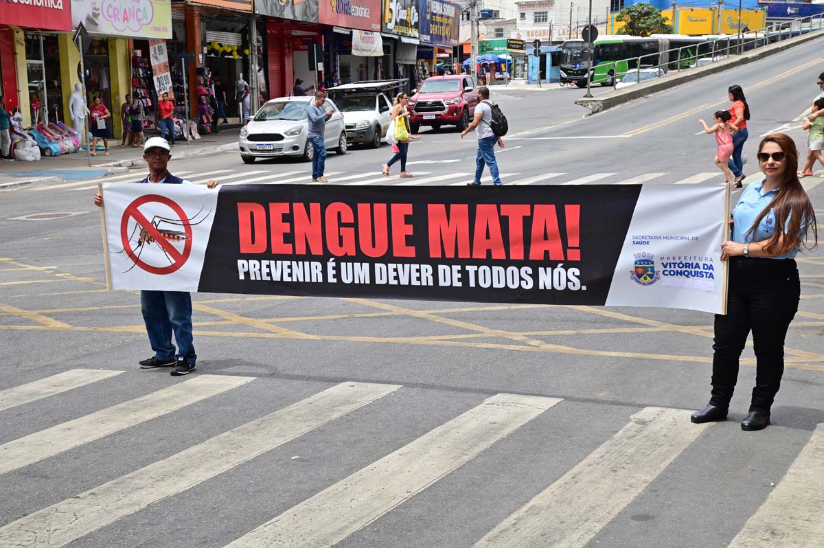 Em Vitória da Conquista, os agentes de endemias se dividiram em três equipes e se concentraram na Avenida Olívia Flores, na feira do Bairro Brasil e e na Praça Nove de Novembro. “Nossa finalidade é divulgar as ações do programa de dengue, e orientar como o morador deve fazer para se proteger do mosquito, para evitar cabeças-de-prego dentro dos vasos e caixas d’água. Então nós estamos mobilizando a população para que ela também, junto com os agentes, evite a reprodução do mosquito, porque só não tem dengue se não tiver mosquito”, disse Renato Freitas, coordenador de Endemias.