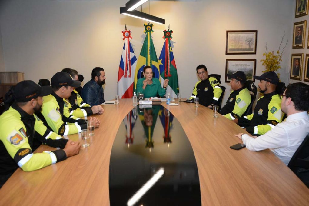 Agentes municipais de trânsito, acompanhados do secretário municipal de Mobilidade Urbana (Semob), Lucas Dias, foram recebidos, na manhã desta segunda-feira (10), pela prefeita Sheila Lemos, em seu gabinete, para apresentar à gestora a minuta do estatuto da categoria. O encontro foi acompanhado também pelo procurador-geral do Município, Jônatan Meireles.