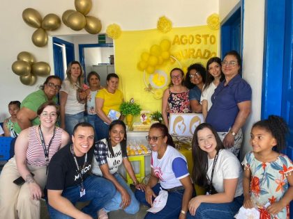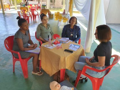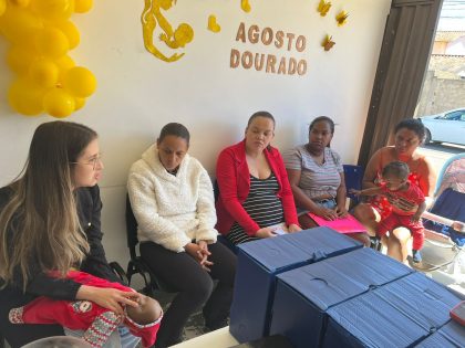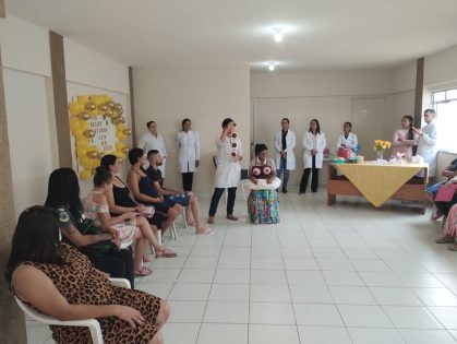 Além do trabalho que é desenvolvido rotineiramente com esse público, as equipes fizeram os dias D de mobilização voltado para o público de gestantes, puérperas, mães lactantes, pais e parcerias, com palestras educativas, práticas corporais, orientações e distribuição de brindes.