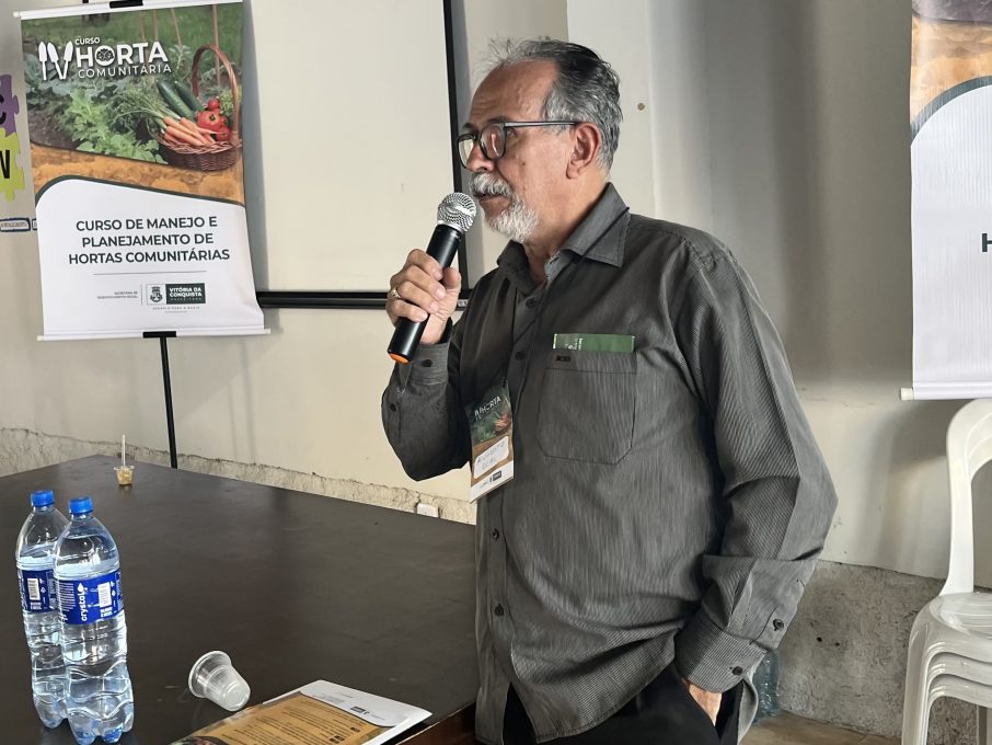 A Prefeitura de Vitória da Conquista realizou, nesta sexta-feira (17), a quarta edição do Curso de Manejo e Planejamento de Hortas Comunitárias, voltado para agricultores das quatro hortas comunitárias urbanas localizadas nos bairros Jardim Valéria, Kadija, Recanto das Águas e Vila América. A capacitação ocorreu no Centro de Convivência do Idoso (CCI) e reuniu cerca de 120 participantes, que receberam orientações técnicas sobre manejo e cultivo de hortaliças.