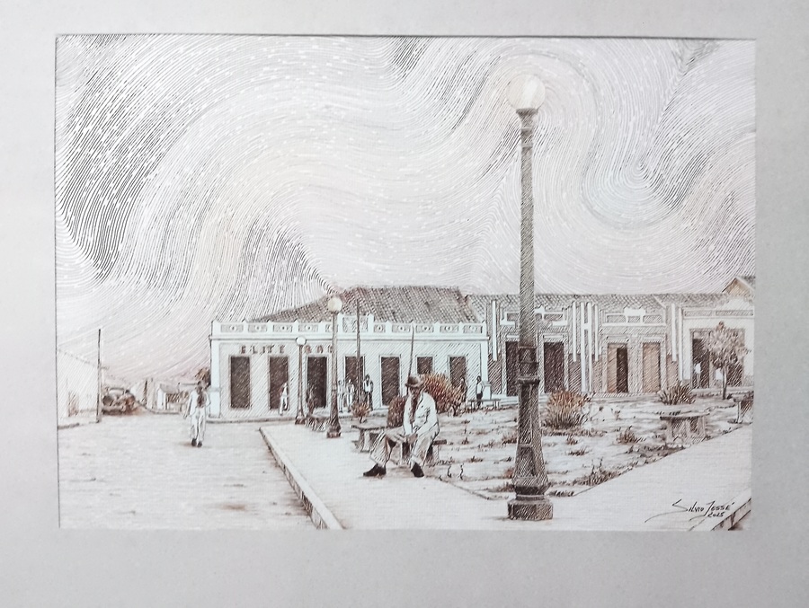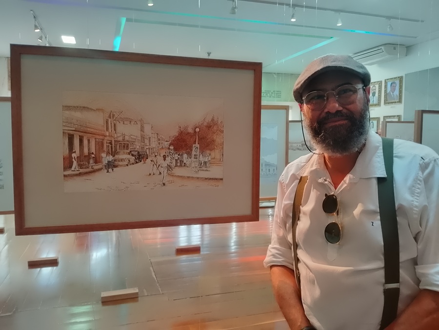 - Sílvio Jessé com seu primeiro desenho da cidade, a lateral da Praça 9 de Novembro