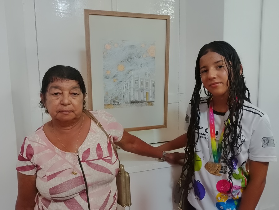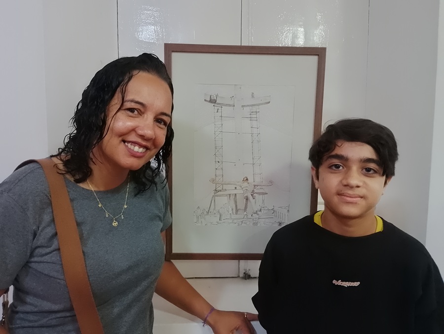 A aluna Ana Clara, do 7° ano da Escola Eurípedes Peri Rosa, tem 13 anos e apreciou muito a exposição, ao lado da avó Maria Senhora. Medalhista de ouro nas categorias estadual e federal da Olimpíada Brasileira de Matemática das Escolas Públicas (Obmep), ela foi contemplada com a visita. “O dom que Deus deu na vida desse homem eu achei muito lindo, porque cada pintura, desenho, tudo me encantou. Eu acho que eu nem sabia como era antigamente a cidade onde a gente mora. Muito lindo mesmo!”, elogiou.
