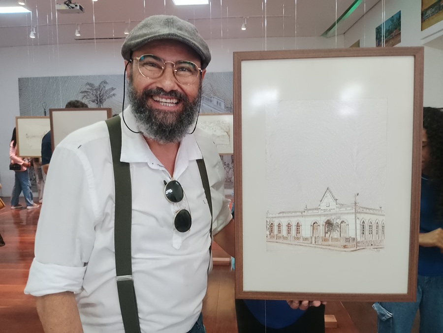 Presente na visita, o artista teve a oportunidade de apresentar seus trabalhos aos alunos da Escola Municipal Prof.ª Ridalva Correia de Melo Figueiredo e do Centro Educacional Eurípedes Peri Rosa, do distrito de Bate-Pé. “Esse trabalho são memórias de Conquista. Eu nasci em 1960 e passei grande parte da minha infância aqui em Conquista. E eu venho fazendo trabalhos de desenho da cidade há muito tempo”, informou Sílvio.