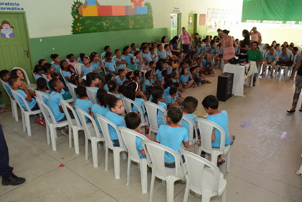 No pátio da Escola Municipal Mãe Vitória de Petu, localizada no bairro Petrópolis, onde é possível avistar parte da mata do Poço Escuro, alunos do 1º ao 3º ano participaram de uma palestra. Realizada na tarde desta terça-feira, 20, por técnicos da Secretaria Municipal de Meio Ambiente, a atividade teve o objetivo de conscientizar os alunos sobre a importância da preservação da fauna e flora local.