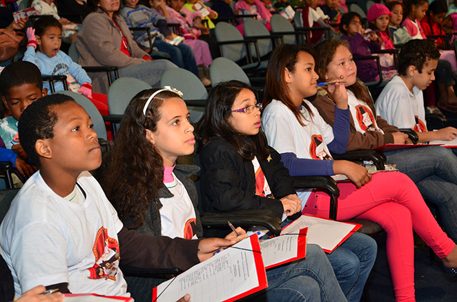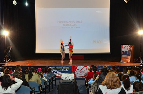 Auditório lotado para mais uma sessão especial de filmes exibidos na 4ª Mostrinha de Cinema Infantil de Vitória da Conquista. Nesta quinta-feira, 10, o Teatro Glauber Rocha, da Universidade Estadual do Sudoeste da Bahia (Uesb), reuniu mais de 300 alunos de escolas e creches da rede municipal de ensino para prestigiarem o quarto dia do evento.