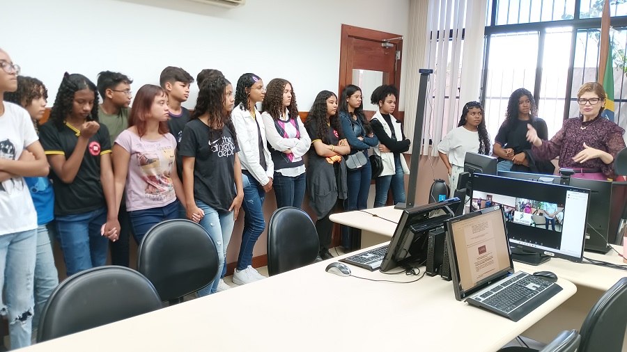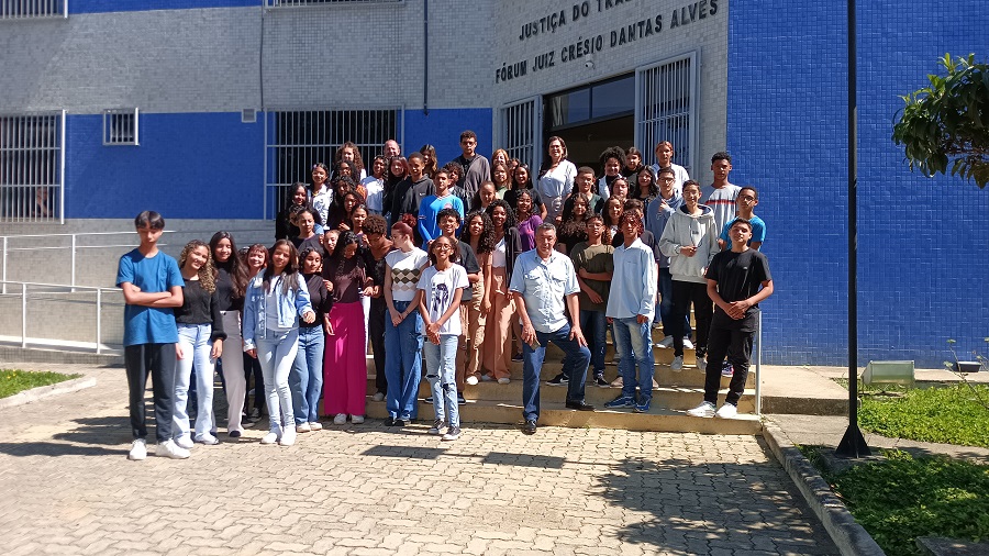 Nesta quinta-feira (21), alunos do 8º e 9º anos, além da Educação de Jovens e Adultos (EJA) da Escola Municipal José Mozart Tanajura, e do 8º e 9º anos da Escola Municipal Frei Serafim do Amparo, visita ao Fórum da Justiça do Trabalho Juiz Crésio Dantas. Os alunos foram recepcionados pela analista judiciária e assistente do juiz Dr. Marcos Neves Fava, Lídia Mara dos Santos Pena. Ela apresentou todas as dependências do prédio, com as devidas competências, funções e trabalho de cada setor.