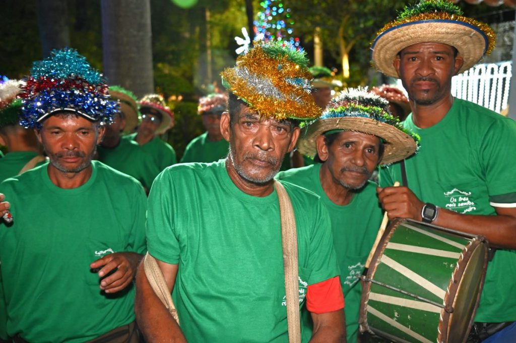 O brilho e a alegria dos Ternos de Reis encantaram crianças, jovens e adultos que aproveitaram a noite deste domingo (22) para apreciar a beleza da Praça Tancredo Neves, com sua tradicional iluminação natalina.