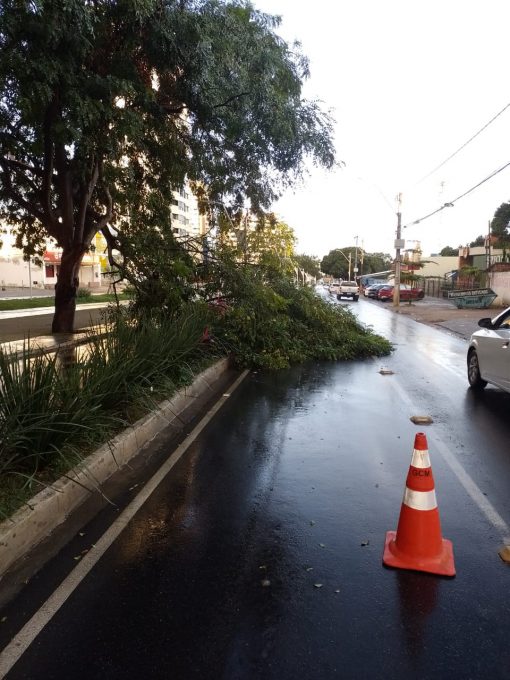 Além do alagamento na Frei Benjamim, uma árvore caiu na Avenida Olívia Flores. Para evitar que a via ficasse interditada, os próprios agentes do Simtrans arrastaram os galhos e depositaram no canteiro central, enquanto aguardava a chegada da equipe da Secretaria Municipal de Meio Ambiente.