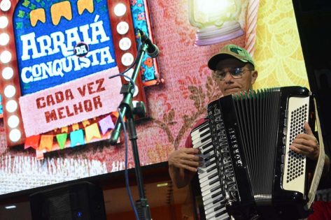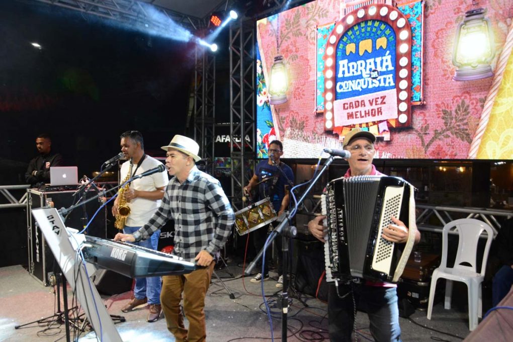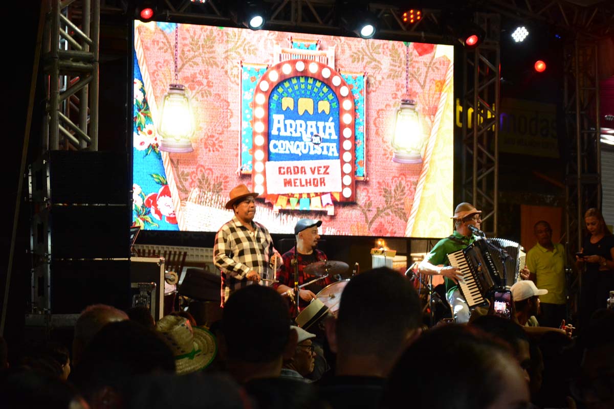 A quinta noite do Arraiá da Conquista bateu recorde de público na Praça Nove de Novembro. Nesta sexta-feira (16), pela primeira vez na história do evento foi preciso interditar a passagem de veículos pela Rua 7 de Setembro, que dá acesso ao espaço, para mais conforto e tranquilidade dos participantes. Os artistas Maildo Nogueira e Zequinha do Acordeon foram os responsáveis pelo arrasta-pé no local.