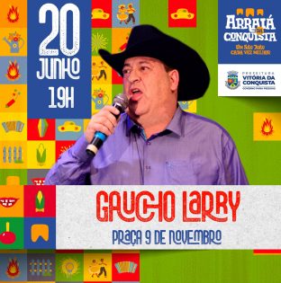 Com mais de vinte anos de estrada, Gaúcho Larry e banda já dividiram o palco com grandes nomes da música nacional. Além disso, já rodaram o país levando Vitória da Conquista na bagagem e no coração. No Arraiá da Conquista, o cantor vai alegrar a população com grandes sucessos juninos.