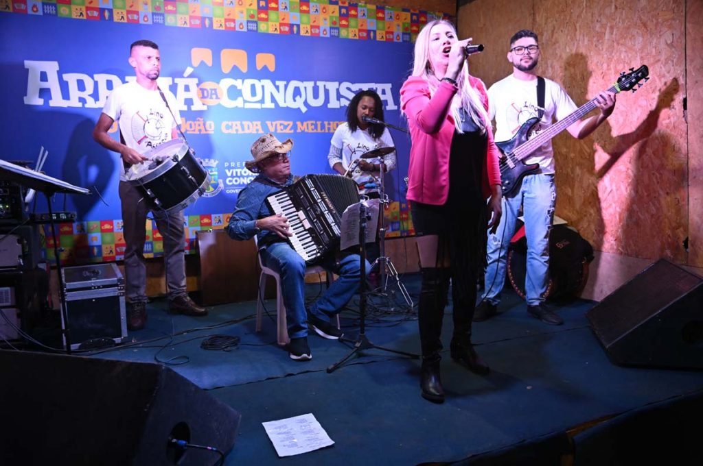 O Arraiá da Conquista, promovido pela Prefeitura Municipal, continua trazendo muita animação para toda a cidade neste período de festas juninas. Nesta sexta-feira (21), às 19h na Praça 9 de Novembro, o povo dançou o autêntico forró raiz, com Carlos Villela. Paralelamente, na Lagoa das Bateias, Lino do Acordeon, acompanhado da vocal Cida, se apresentou na Vila Junina ali montada, alegrando os presentes.