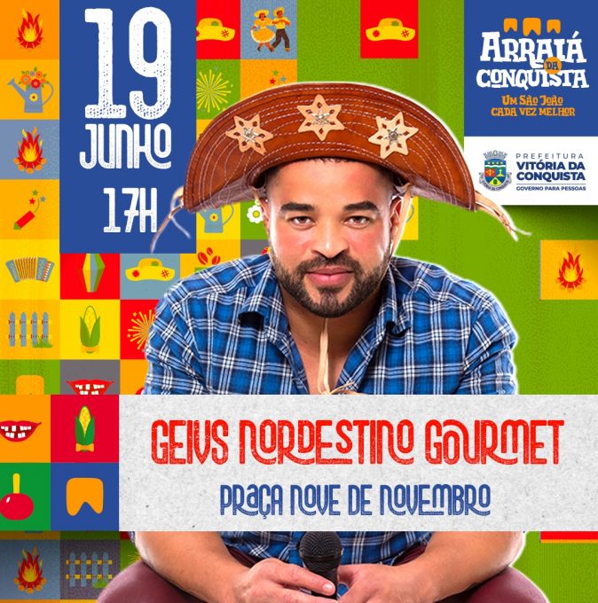 Nesta quarta-feira (19), o Arraiá da Conquista retorna à Praça Nove de Novembro. As festas começaram no dia 10 de junho e se estendem até o dia 29 deste mês. Hoje, o Arraiá conta com duas atrações especiais: Geivs Nordestino Gourmet, que se apresenta às 17h, e Cigano Cantador inicia a sua performance às 19h.