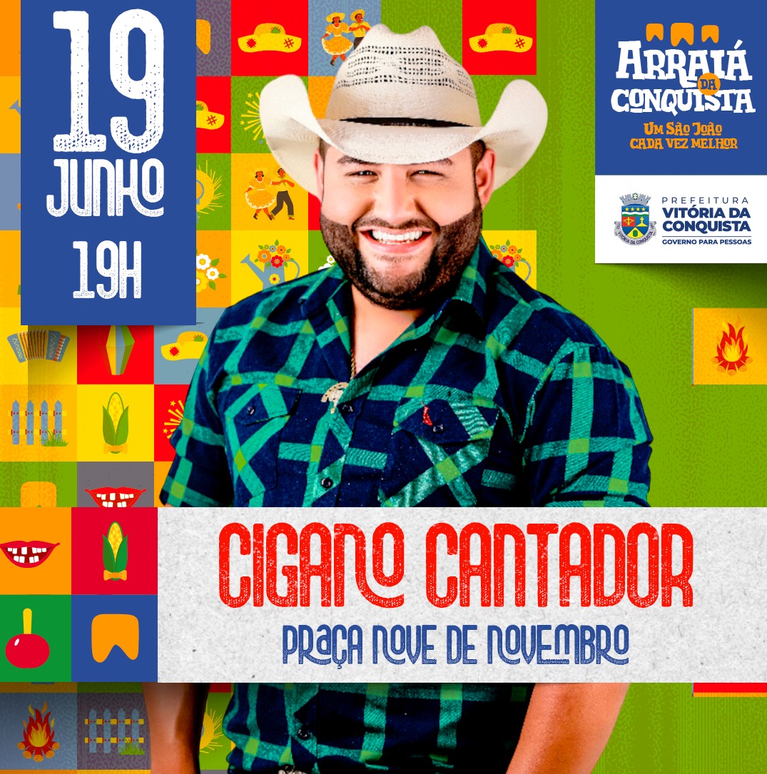 O artista Cigano Cantador iniciou sua carreira musical há cerca de seis anos e vem se destacando nas cidades da região. Natural de Brumado, o cantor já lotou eventos em Livramento de Nossa Senhora, Tremedal e no São Pedro do Bairro Olhos D’água, em Brumado. Com sua alegria e carisma, Cigano Cantador contagia o público, animando forrozeiros de todas as idades. “Coisinha para beber” (2023) foi um dos lançamentos musicais feitos pelo artista.