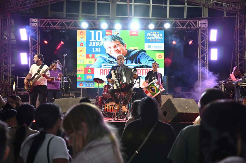 Ao som da sanfona, do triângulo e da zabumba, a Prefeitura de Vitória da Conquista abriu, oficialmente, nesta segunda-feira (10), na Nove de Novembro, o Arraiá da Conquista. E a exemplo do que aconteceu em 2023, o público lotou a praça para conferir e arrastar o pé com Andrade de Sertânia e Trio Aconchego.