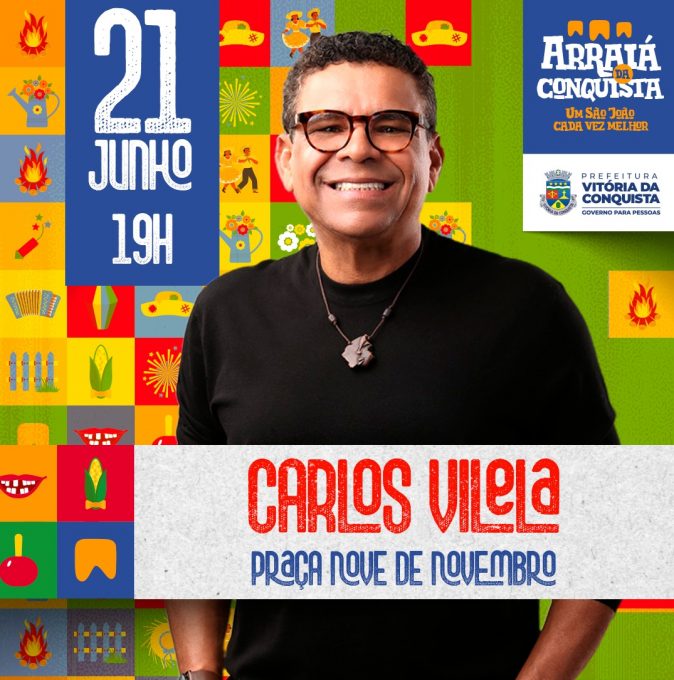 Nesta sexta-feira (21), o Arraiá da Conquista continua na Praça Nove de Novembro. As festas começaram no dia 10 de junho e se estendem até o dia 28 deste mês. Hoje, o Arraiá conta com duas atrações especiais: Zé de Sula, que se apresenta às 17h, e Carlos Villela, que inicia a sua performance às 19h.