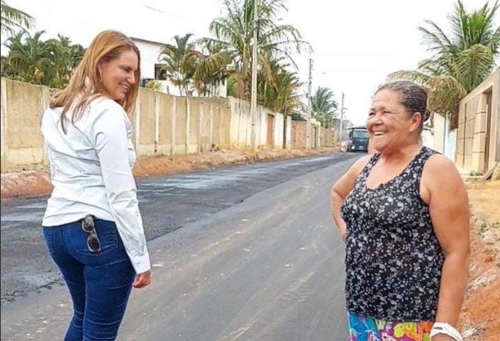 Dona Inalda Prado caminhou pela rua já asfaltada, quando encontrou a prefeita e a parabenizou pelo trabalho. “Foram muitos anos de espera e sofrimento, agora estamos muito felizes. Era um sonho esperado há muito tempo e agora está quase pronto. Só tenho que agradecer!”, comemorou.