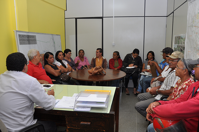 Representantes das Associações de Moradores dos bairros Coveima I, Antônio Brito e Vila da Conquista participaram, na tarde dessa terça-feira, 29, de uma reunião com o secretário municipal de Mobilidade Urbana, Luis Alberto Sellmann. O encontro também contou com a presença do coordenador de Infraestrutura Viária, Agnaldo Borges, e do gerente de Mobilização do Orçamento Participativo (OP), Idelzito Rocha.