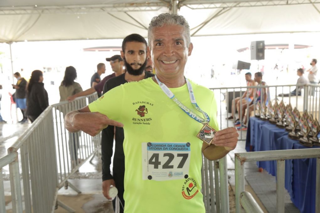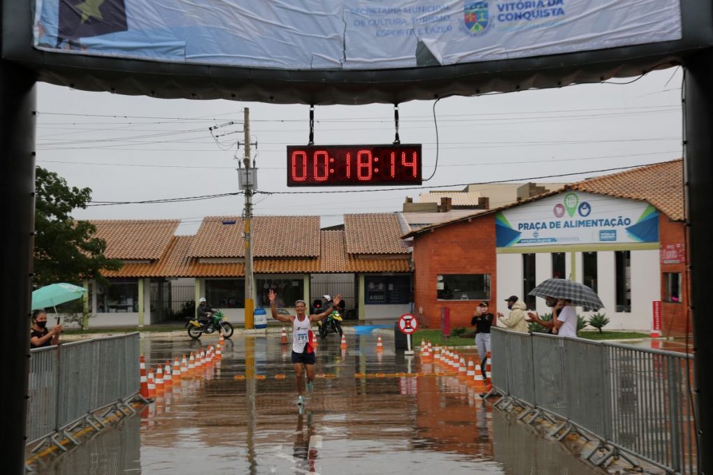 O primeiro a ultrapassar a linha de chegada foi o corredor Fabrício Gomes Santos, conhecido como Pancada, que fez o tempo de 18m21s. Fabrício é corredor de maratonas e aproveitou a corrida para treinar. “Deu para brincar. Hoje me superei e o bom é que foi no aniversário da cidade, com atividade. Conquista é uma cidade maravilhosa, que todos gostam, e hoje eu ganhei uma atividade fazendo atividade física. Essa é a melhor forma de adquirir longevidade”, comemorou Pancada.