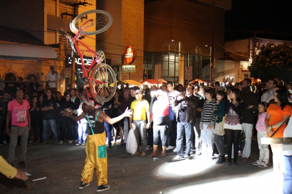 A noite começou com a apresentação do Cauan Circo, que divertiu o público com números tradicionais do universo circense, como o malabarismo e o equilíbrio sobre cilindros. O grupo está de passagem por Vitória da Conquista e se apresentará nos três dias do festival.