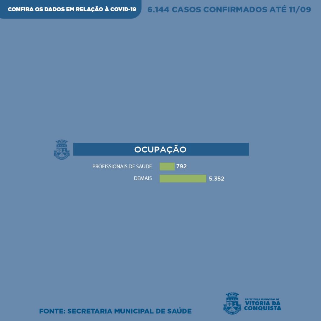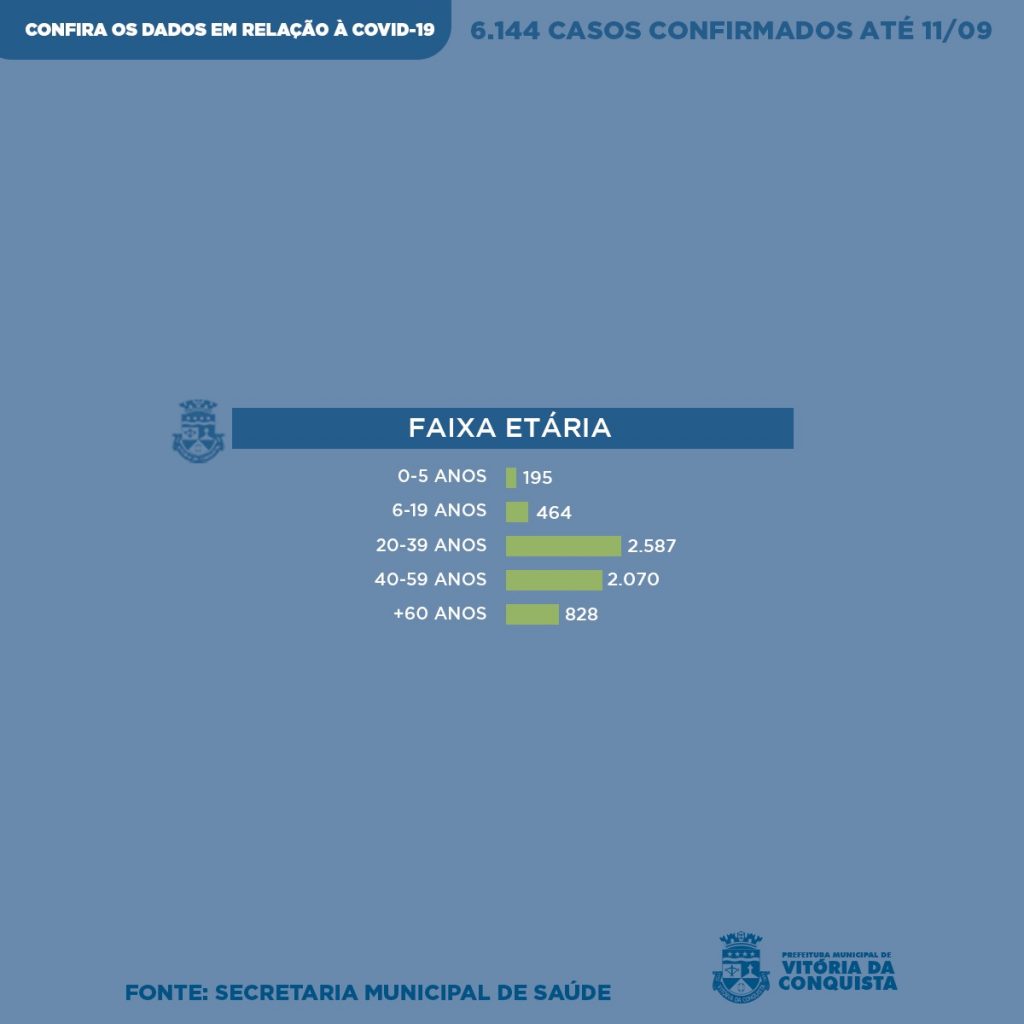 Nos últimos sete dias, 413 pessoas tiveram diagnóstico positivo para Covid-19, chegando a 6.144 casos confirmados em Conquista. O perfil epidemiológico atualizado desses pacientes foi divulgado neste sábado (12) pela Vigilância Epidemiológica, incluindo os novos casos, bem como os óbitos registrados nesta semana.