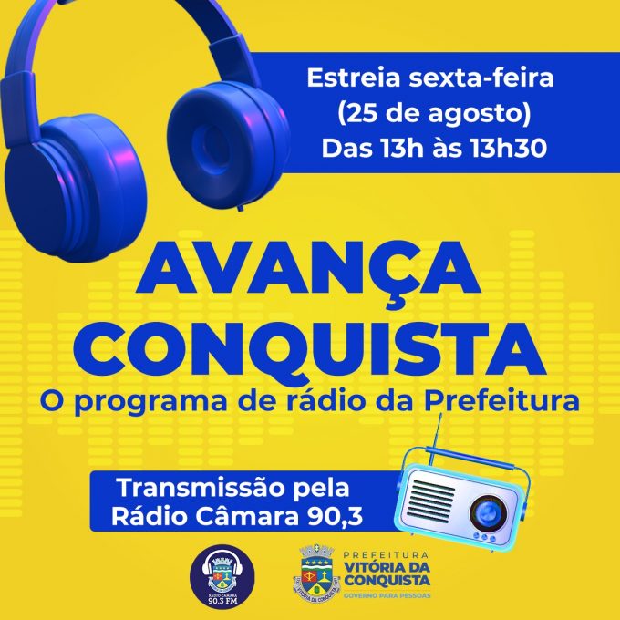 A partir desta sexta-feira, 25, às 13 horas, a Prefeitura de Vitória da Conquista leva ao cidadão, pelas ondas da Rádio Câmara 90,3 FM, de forma leve, interativa e descontraída, informações sobre as ações e serviços realizados pelo Governo Municipal, além das demandas do Município. Com 30 minutos de duração, o programa Avança Conquista será apresentado pela servidora e radialista Carla Andrade, e a participação do secretário municipal de Comunicação, Luiz Fernando Lima.