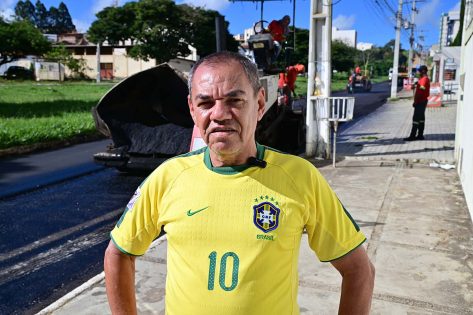 Além do recapeamento, a avenida também passa por um processo de reperfilamento, que consiste em nivelar e adequar todo o pavimento. É possível notar que a camada de material asfáltico utilizada é de grande quantidade, e o senhor Edjalma aprovou a qualidade da obra. “Excelente, muito bonito, um trabalho muito bem feito. Eu sou curioso, toda hora estou aqui olhando e acompanhando. Muito bem feito. Excelente mesmo”, afirmou.