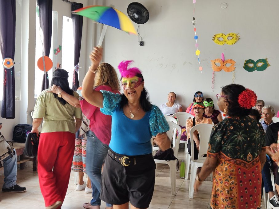 A festa contou com marchinhas carnavalescas, confetes, serpentinas e fantasias, transformando o espaço em verdadeiro salão de baile. Para a coordenadora da Proteção Social Básica, Dayna Evelinne, momentos como esse são fundamentais para a qualidade de vida das pessoas idosas. “O CCI é um espaço onde a socialização, a alegria e a troca de experiências fazem toda a diferença. O baile de Carnaval é uma atividade que, além de divertir, fortalece os vínculos entre os participantes e promove um envelhecimento ativo e saudável”, destacou Dayna.