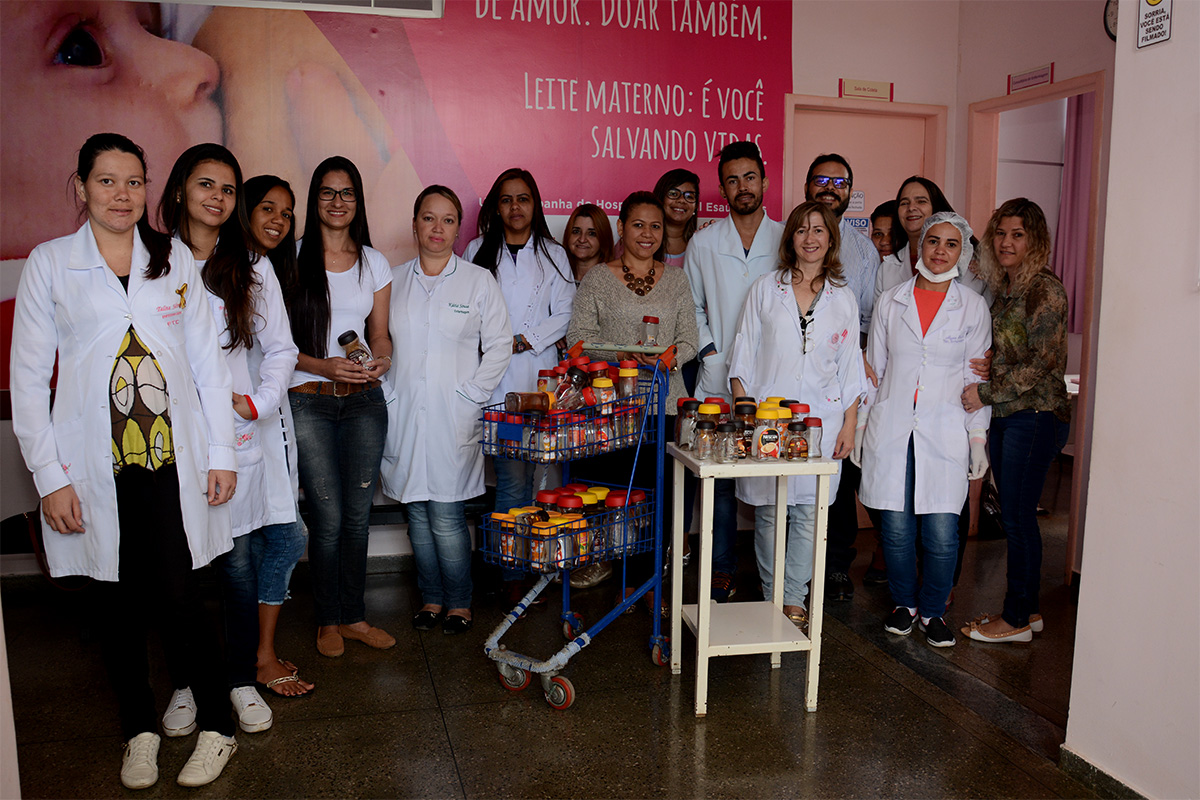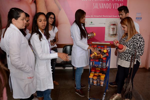 Os potes foram arrecadados durante a Semana do Calouro da instituição, quando a médica do Banco de Leite ministrou uma palestra que integrou a programação especial do Agosto Dourado – mês dedicado ao aleitamento materno.