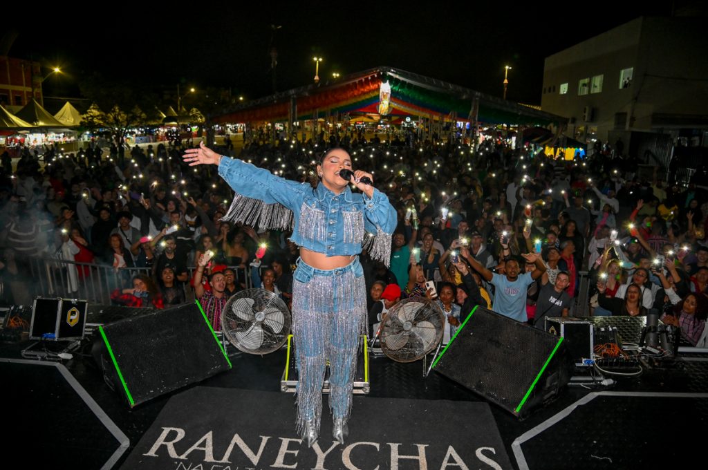 Essa foi a primeira que a Banda Raneychas participa da festa junina promovida pela Prefeitura de Vitória da Conquista, e já mostrou porque é um sucesso popular, tocada em todas as estações de rádio e em todos os cantos. Com um repertório pensado para agradar o público de todas as idades, a cantora Nataly Barreto, representante da banda, conta que ‘Bar das Raneychas’ é a parte mais esperada pelos fãs na hora dos shows.