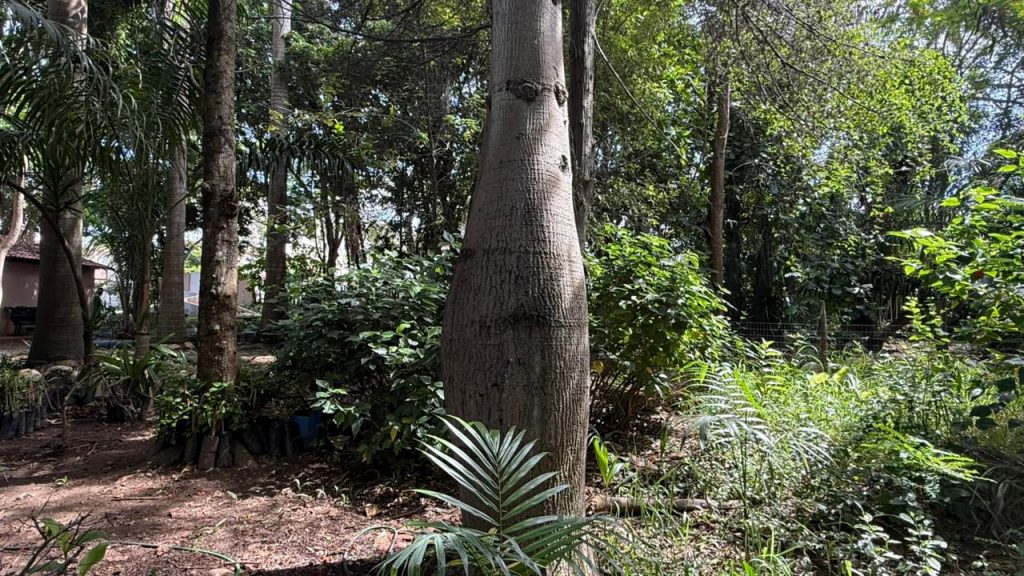 - Necessidades da Espécie – A barriguda é uma árvore de Caatinga e não pode receber água constante (como perto da lagoa, onde a água era muito rasa). O local escolhido tem solo drenável e muito adubado, ideal para o crescimento.