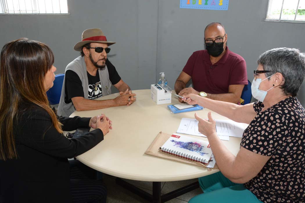 Da esquerda para a direita: Eduardo Borges, técnico em braile da Fundação, Jeane Marie, Laura Carmo e Xangai