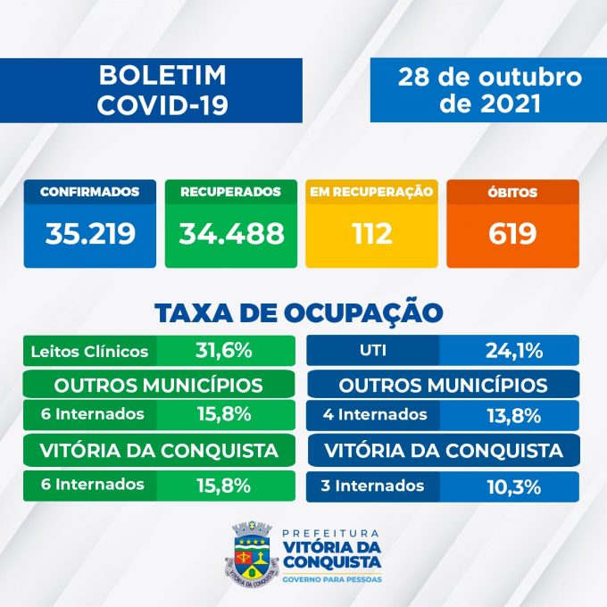 Sem registro nas últimas 24 horas, o total de óbitos de conquistenses pela doença permanece em 619.