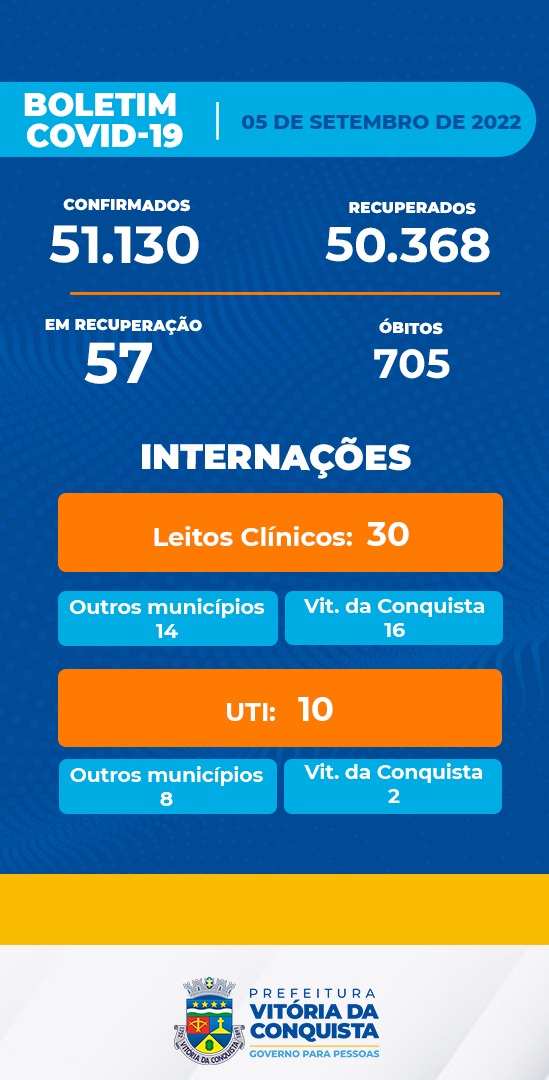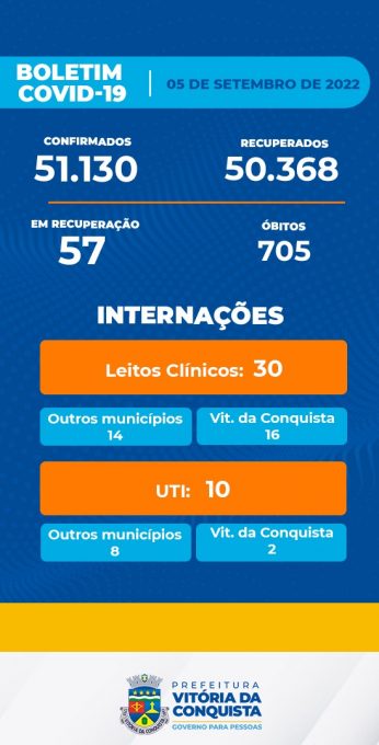 Nos hospitais da cidade, há 40 pacientes internados com Covid-19, dos quais 18 são de Vitória da Conquista e 22, de outros municípios.